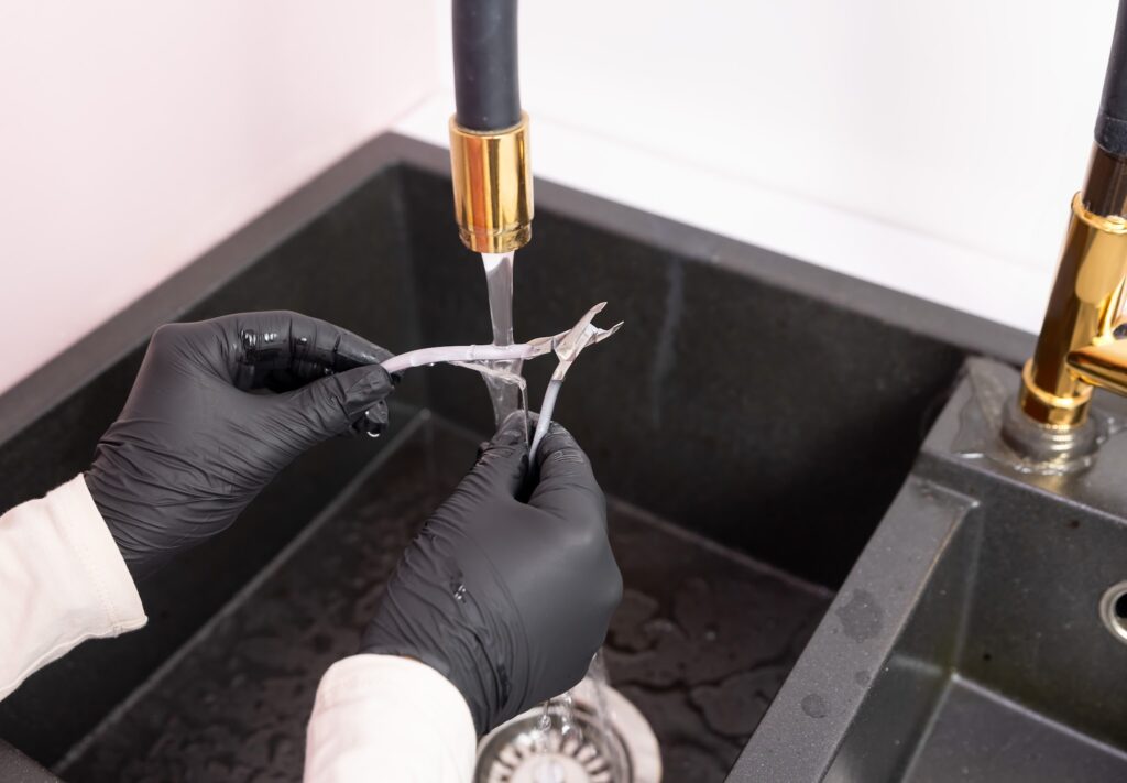 After every service, tools must first be washed in warm water with detergent to remove dust, nail residue, and cuticle oils.