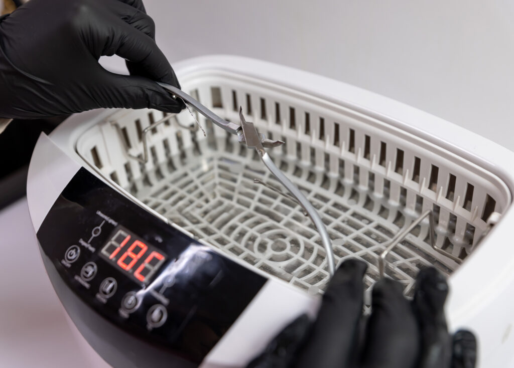 This step removes the visible dirt — but more importantly, it prepares the tool for effective sterilization later.